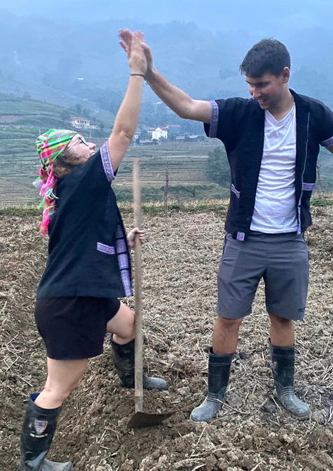 Later in the afternoon, the path led us to the Muong Hoa Valley, where rice terraces carved into the hills looked like rippling ribbons of green and gold. The sun broke through the clouds just in time, casting long shadows and illuminating the land in warm, golden hues. Locals worked calmly in the fields, their movements rhythmic and grounded, part of the landscape itself. It felt timeless.